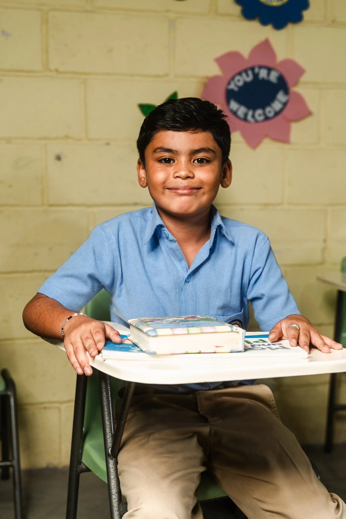 Jose Benjamin is a cheerful 7-year-old from Barrio El Centro, where he lives with his mom in a rented apartment. He dreams of becoming a firefighter and loves English class, soccer, and playing with his cousin Emilio. One of his favorite things is riding the school bus, and he hopes to visit another country someday. With a brave heart and big dreams, Jose is ready to serve and grow.
